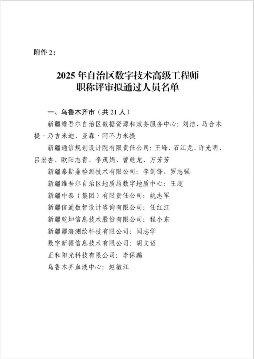 附件2:2025年自治区数字技术高级工程师职称评审拟通过人员名单
