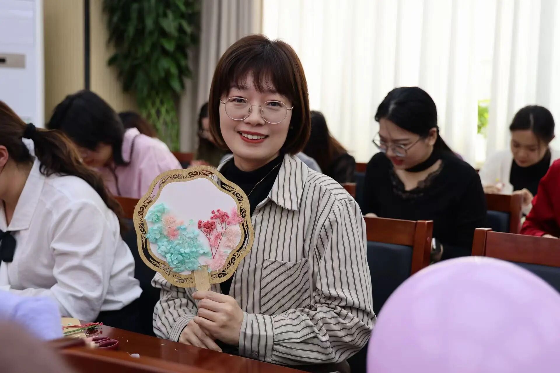 活动现场暖意融融,内容丰富、形式多样。活动特意邀请护肤领域专业讲师,带来一场干货满满的护肤专题讲座。在轻松愉悦的手工团扇制作环节,女同志们卸下工作的疲惫,一边专注创作,一边相互交流技巧、分享喜悦,现场氛围温馨而热烈。男同志们精心录制祝福视频,以真挚的话语、暖心的表达,为女同志们送上了最诚挚的节日祝福,尽显同事间的深厚情谊。