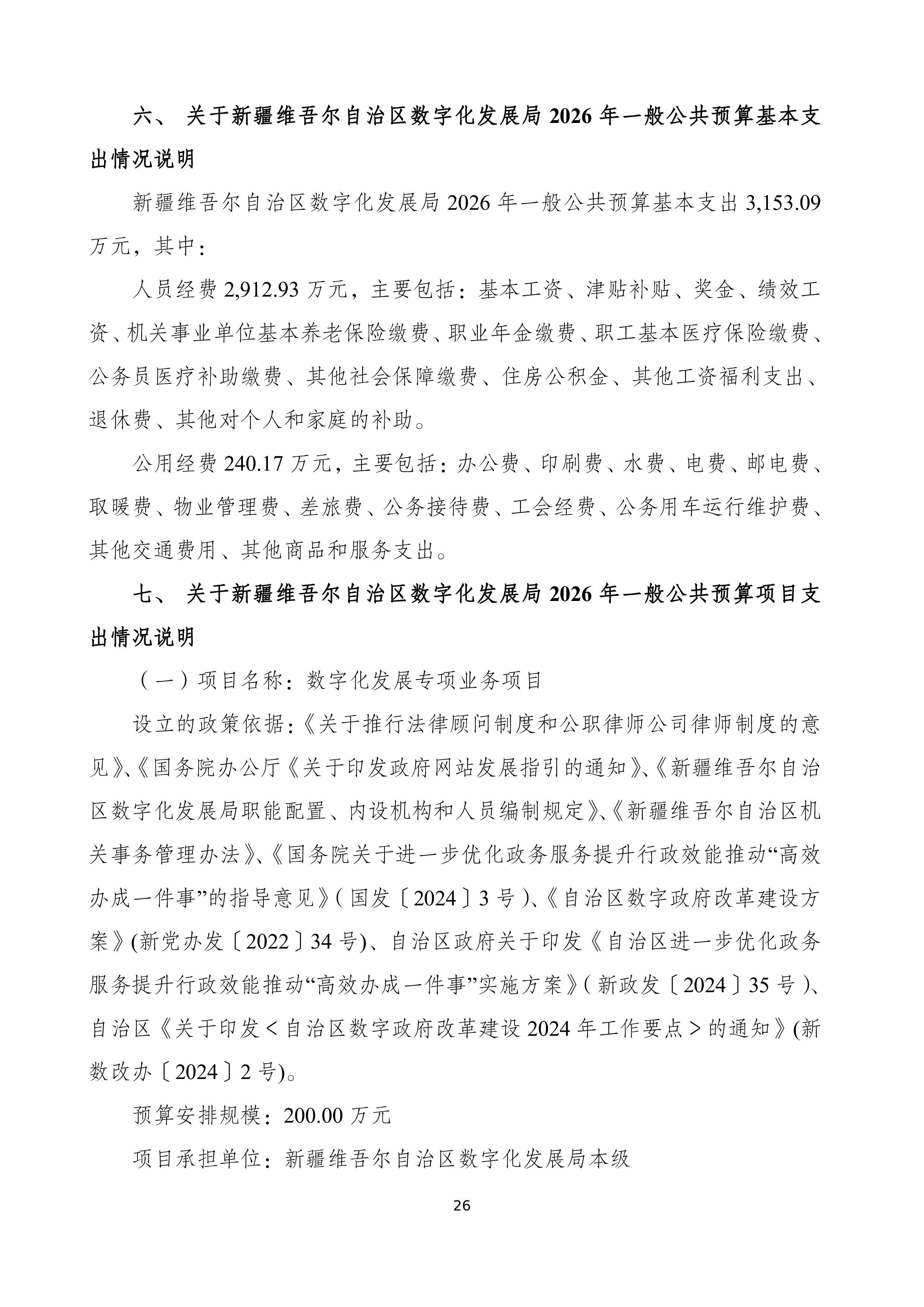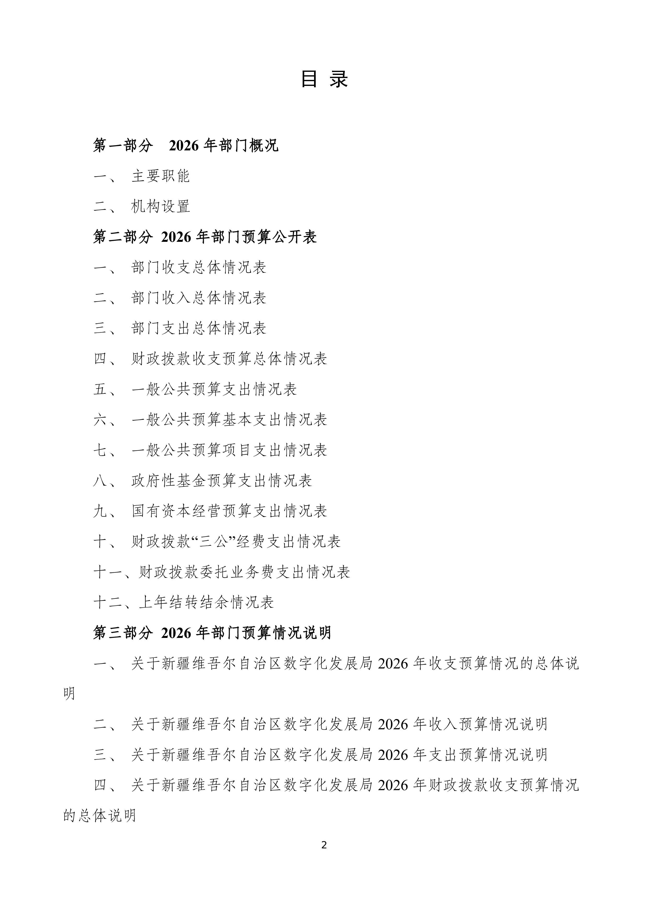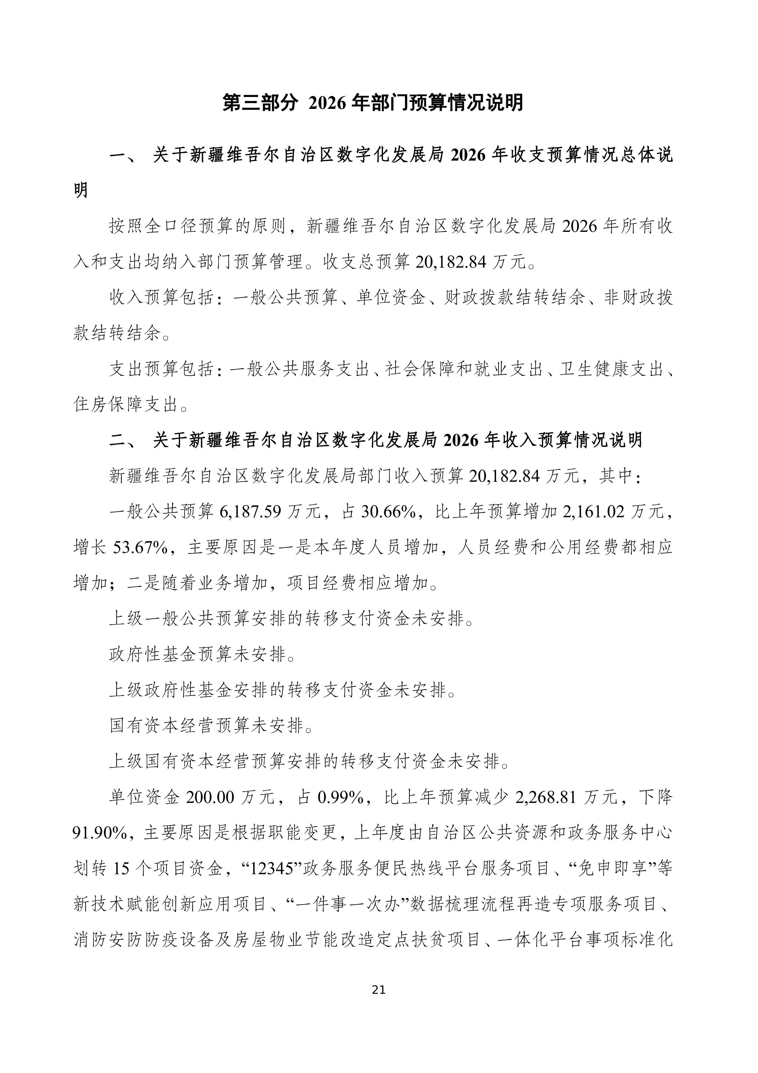 新疆维吾尔自治区数字化发展局2026年部门预算公开报告
