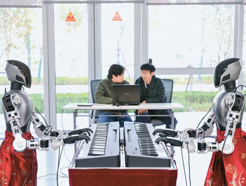 通过高质量数据采集和场景化训练,能够加速具身智能技术落地应用。图为2025年12月18日,长三角(德清)具身智能数据采集训练场中,机器人在仿真环境中训练。 人民图片 赵宁/摄